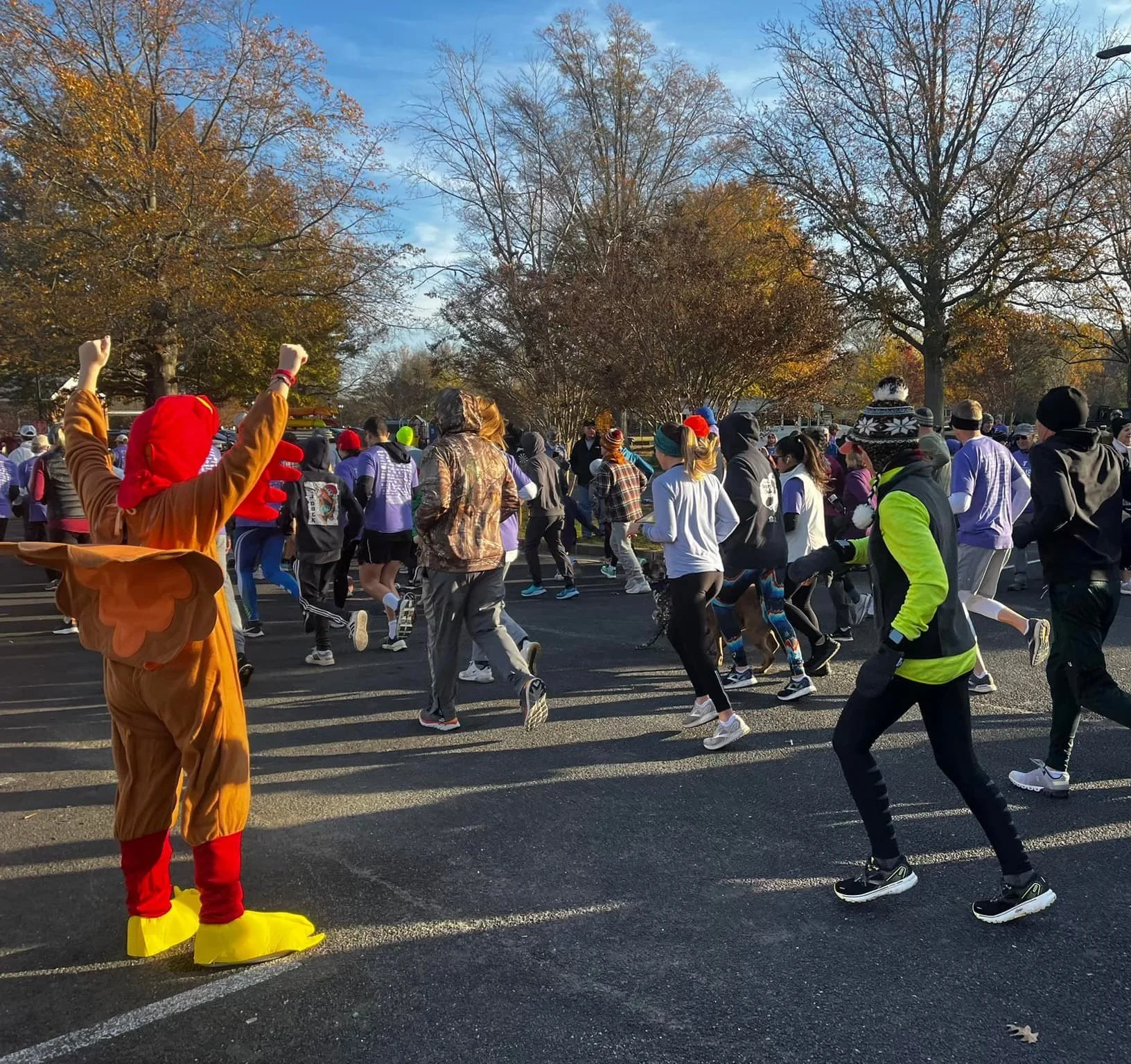 Each in-person Turkey Trot will be a 5K (3.1 miles) course held on Thanksgiving Day at 8:30 AM. Participants can run or walk as a team, with family (including their dogs), or on their own. All ages and abilities are welcomed and encouraged.