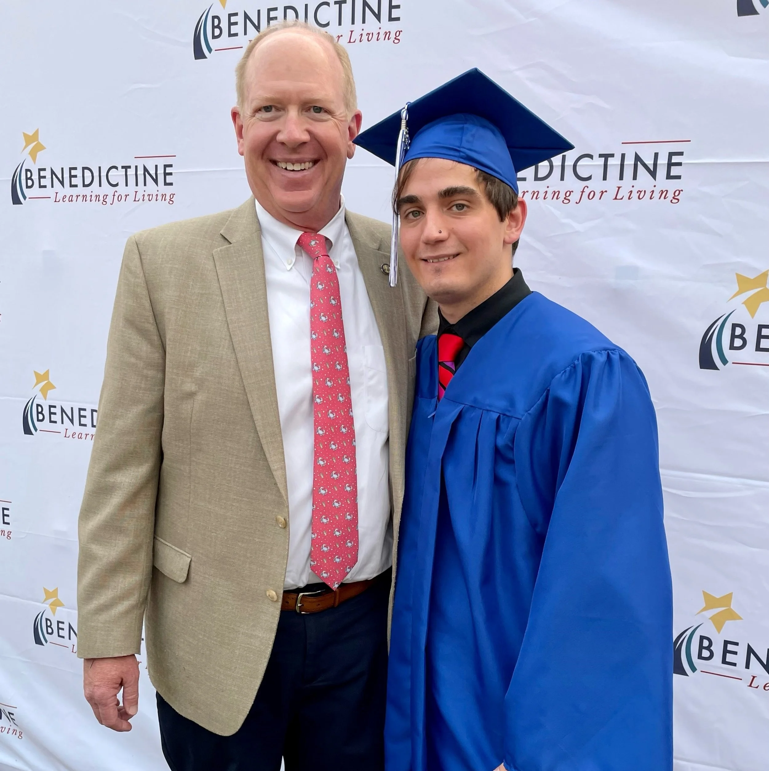 Scott Evans, Benedictine Executive Director, poses with graduate Ben who received the 2023 Student of the Year Award